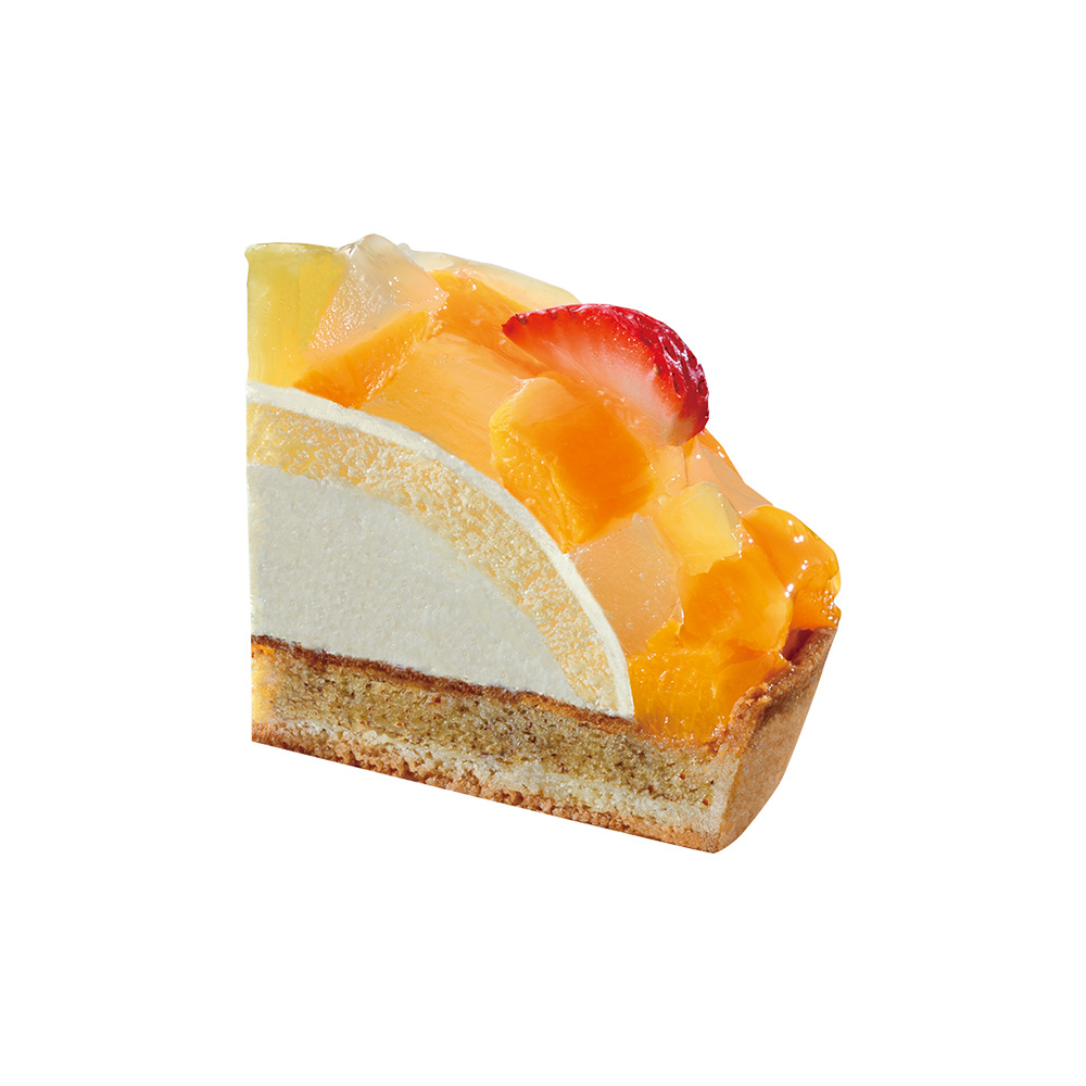 黄桃・白もも・洋ナシ・パイン・苺の5種類のフルーツを楽しめるフルーツタルトです。