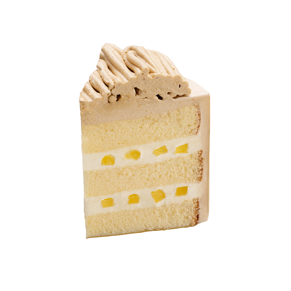 糖漬マロンダイスとカスタードホイップクリームを 2層サンドし、マロンクリームをデコレーション。渋皮付きの糖漬マロンをトッピングしました。